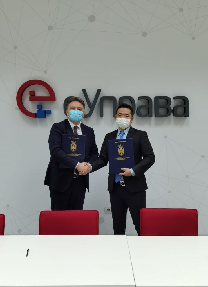 Ugovor su potpisali generalni direktor kompanije Huawei u Srbiji, gospodin Chen Chen i direktor Kancelarije za IT i eUpravu, prof. dr Mihailo Jovanović.